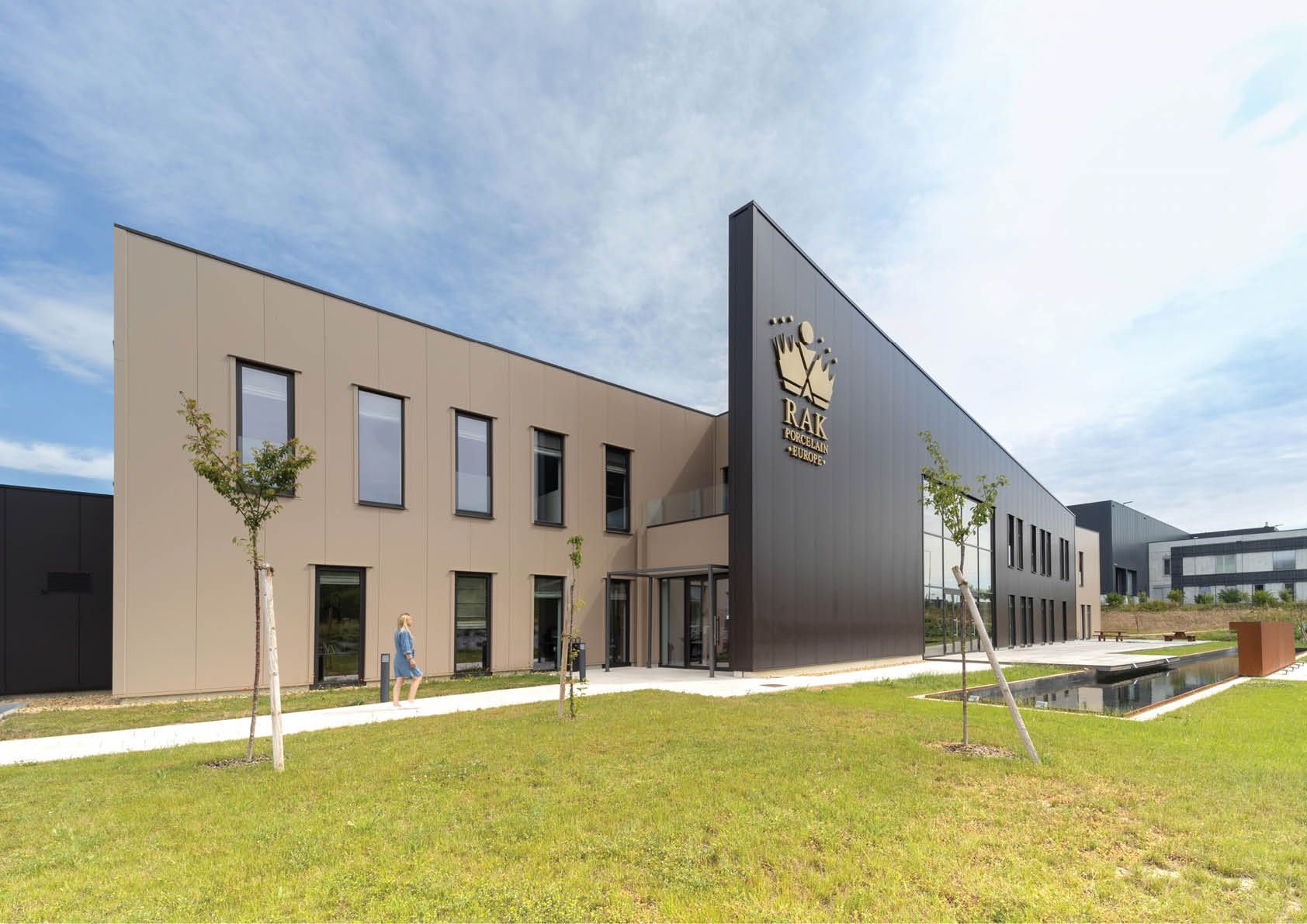 Le site actuel du fabricant de porcelaine à Windhof ayant atteint sa capacité maximale, un bâtiment multifonctionnel de 5 500 m2 a été construit au “Krakelshaff”, pôle logistique et ferroviaire de Bettembourg. Le nouveau centre de distribution européen de RAK Porcelain permet à l’entreprise de regrouper toutes ses activités logistiques, comme la réception de 11 millions de produits finis en porcelaine expédiés au Luxembourg chaque année de l’usine de Ras al-Kaimah. Les trois quarts du bâtiment sont occupés par les stocks de porcelaine : une plateforme qui dessert toute l’Europe. A côté des 350 m2 de bureaux, se situe l’espace d’exposition où sont mises en scène les collections. La qualité des finitions et l’architecture intérieure créent une ambiance raffinée et très contemporaine qui renforce l’esthétique de l’ensemble. Une conception architecturale intelligente, des solutions constructives tirant parti des ressources disponibles telle que la structure en acier : cette réalisation allie esthétique et légèreté, et s’intègre parfaitement dans son environnement.