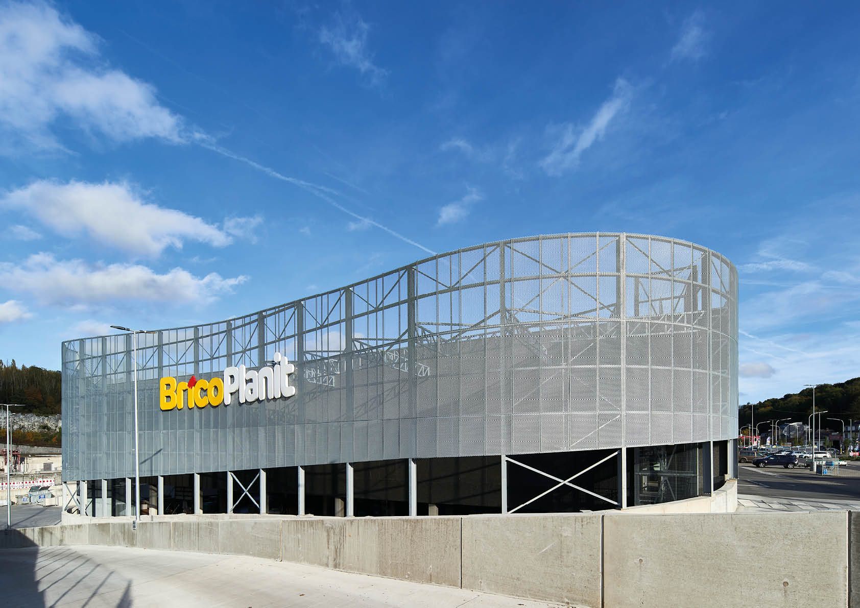 Le magasin BricoPlanit de Jambes a fait peau neuve, dans tous les sens du terme. Sa surface commerciale et de stockage a été plus que doublée pour répondre aux attentes de la clientèle, mais également du personnel. La structure en béton a été recouverte, sur quasi toute sa surface, d’un bardage de façade en métal déployé.