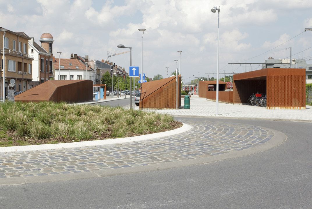 Les ouvrages concernés relèvent de la deuxième phase des aménagements pour le RER : construction d’un parking souterrain et de ses accès; création d’un couloir sous voies desservant les quais et reliant les deux rives du chemin de fer; extension de la gare des bus et aménagement des voiries et de l’espace public. L’acier auto-patinable est le dénominateur commun à tous les édicules qui émergent sur le site et rythment l’espace public.
