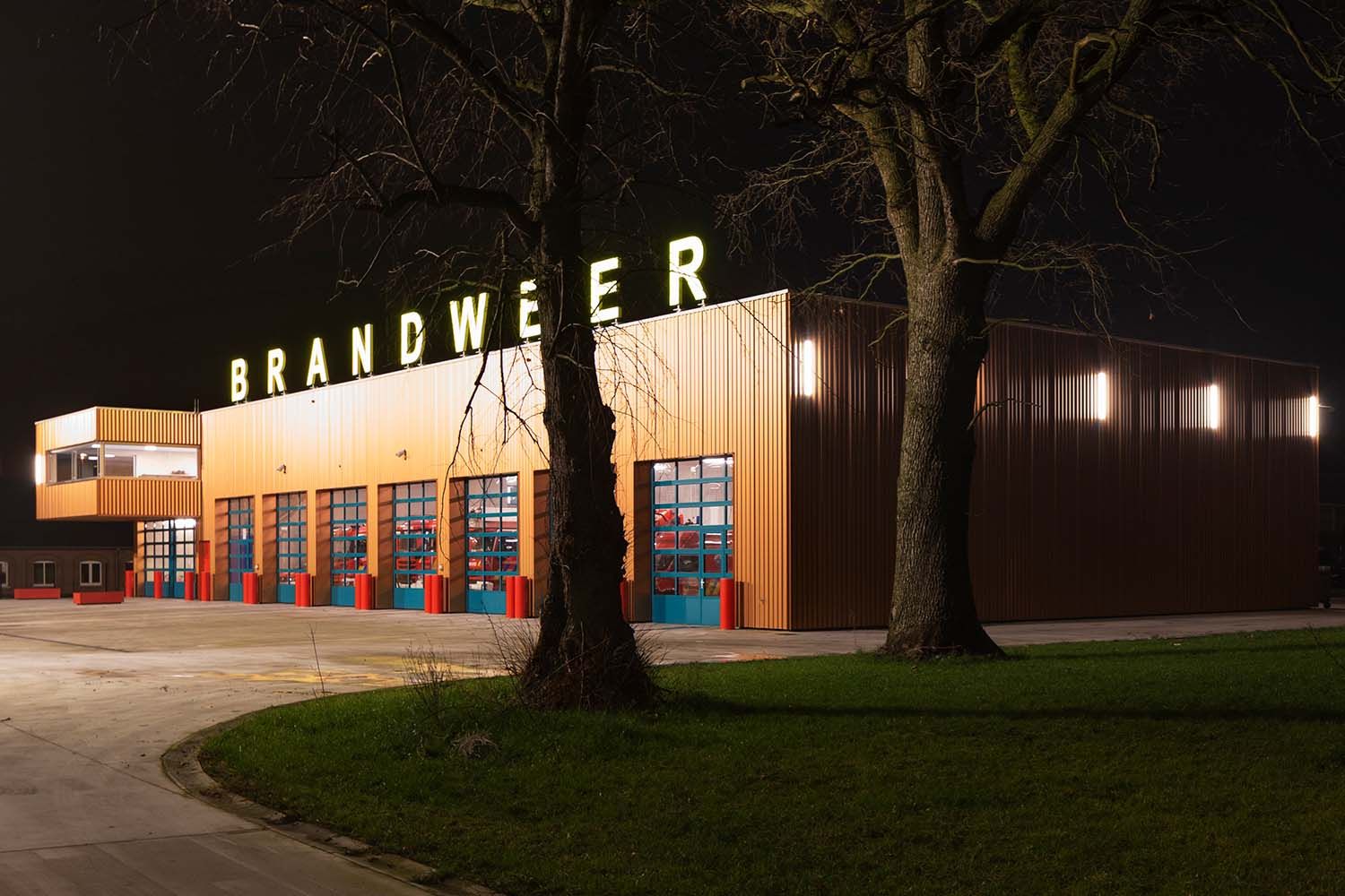 BEL architecten et Point Supreme Architects ont doté Leopoldsburg de l’une des casernes de pompiers les plus modernes du pays. Pour réduire la durée du chantier et créer un bâtiment le plus robuste possible, la structure de base fut réalisée en béton préfabriqué. Celle-ci fut ensuite habillée de tôle ondulée de Tata Steel, dont la nuance cuivrée permet à la caserne de s’intégrer parfaitement dans le bâti environnant essentiellement en brique.