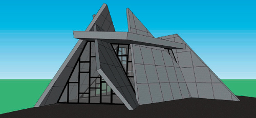 Op deze manier ontstaat een nieuwe plek die de openheid van de EU weerspiegeld. Hierbij worden de oost- en westgevels afgesloten tegen de lage zon. Aan de zuidkant wordt door een horizontaal element een overdekt terras gecreëerd. De wandelementen (de veelhoekvlakken) zijn dragend door middel van een staalskelet van kokerprofielen, bekleed met geperforeerde staalcassettes. Door een verschil in perforatie krijgen de staalcassettes een ander aspect.