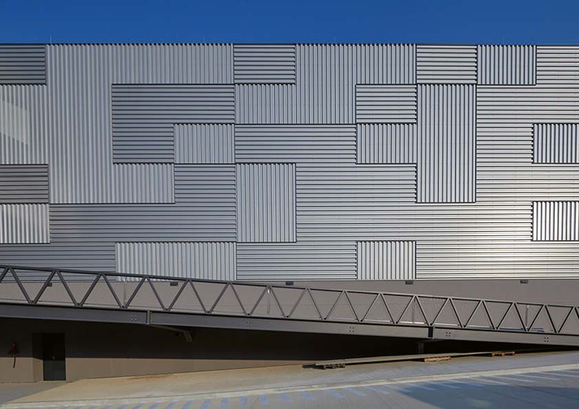 De gebouwen omvatten twee grote functies: kantoren en industriële hallen, aangevuld met gemeenschappelijke ruimtes. Dit resulteert in een flexibel en modulair geheel. Staal is er alomtegenwoordig: draagstructuur (het volledige skelet van de hallen), dak, schil (sandwichpanelen + gevelbekleding) en afwerking/sloten (meer bepaald borstweringen, leuningen in de trappenhuizen en binnendeuren). De gevels met een metaalbekleding (georiënteerde sandwichpanelen) hebben een variabele dynamiek, waarvan de esthetiek dankzij de schaduwwerking varieert naargelang de tijd en de seizoenen. Het gebruik van staal werd gerechtvaardigd door de nood aan een snelle uitvoering op basis van een strakke planning (een week montagetijd voor de draagstructuur), de grote overspanning van de draagstructuur (hal met open grondplan en uitkraging boven de vrachtwagentoegang, die enkel realiseerbaar was in staal) en de vereiste flexibiliteit van de ruimtes.