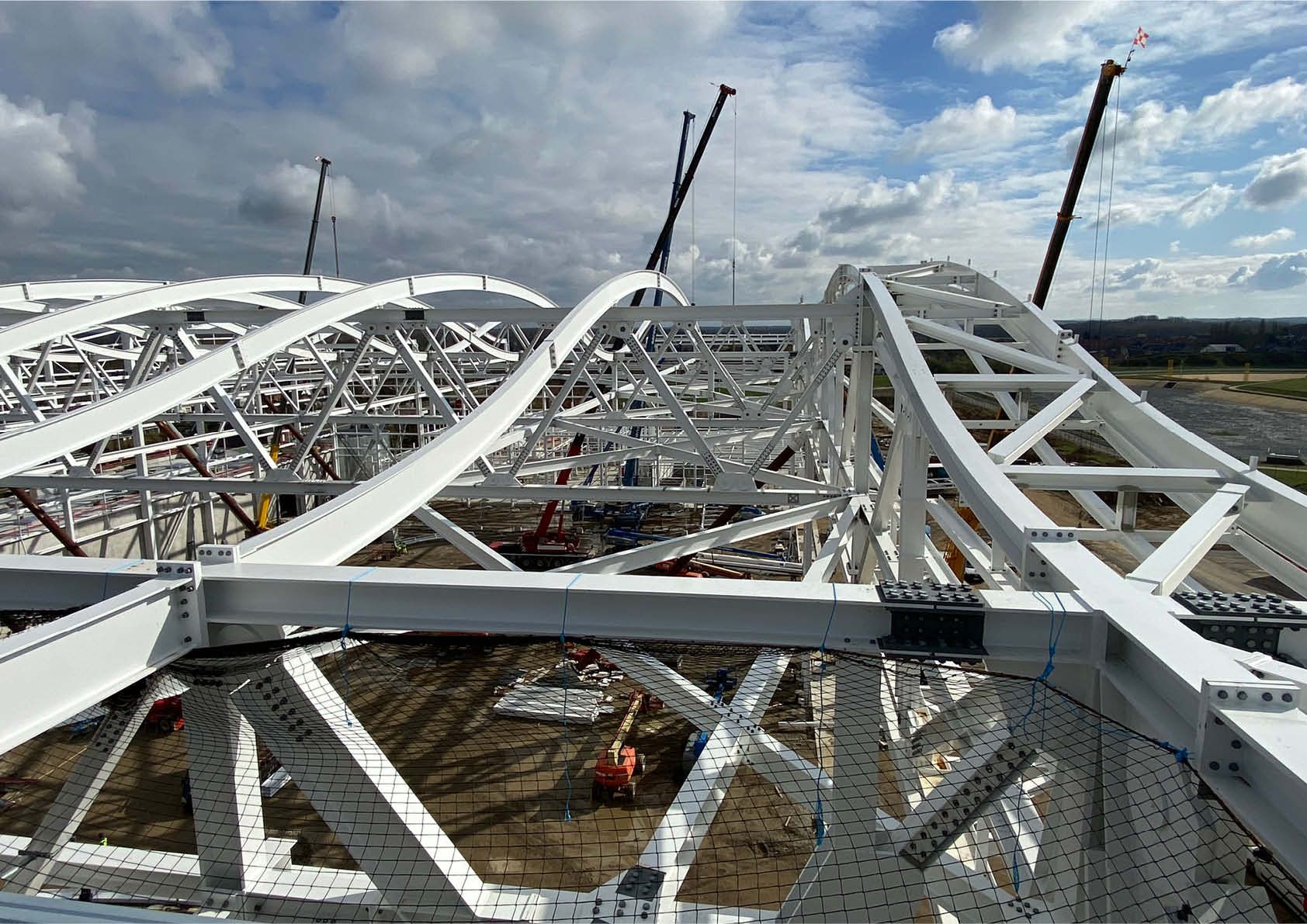 Het ministerie van Defensie is haar vliegtuigvloot en -infrastructuur volop aan het vernieuwen. Zo worden de welbekende C-130’s beetje bij beetje vervangen door Airbus A400M-transportvliegtuigen, die een heel stuk groter zijn dan hun voorgangers. Vandaar dat er op de militaire luchthaven van Melsbroek een gloednieuwe onderhoudsloods is opgetrokken, die een oppervlakte van bijna 14.000 m² bestrijkt – de grootste vliegtuighangar die Defensie ooit heeft laten bouwen.