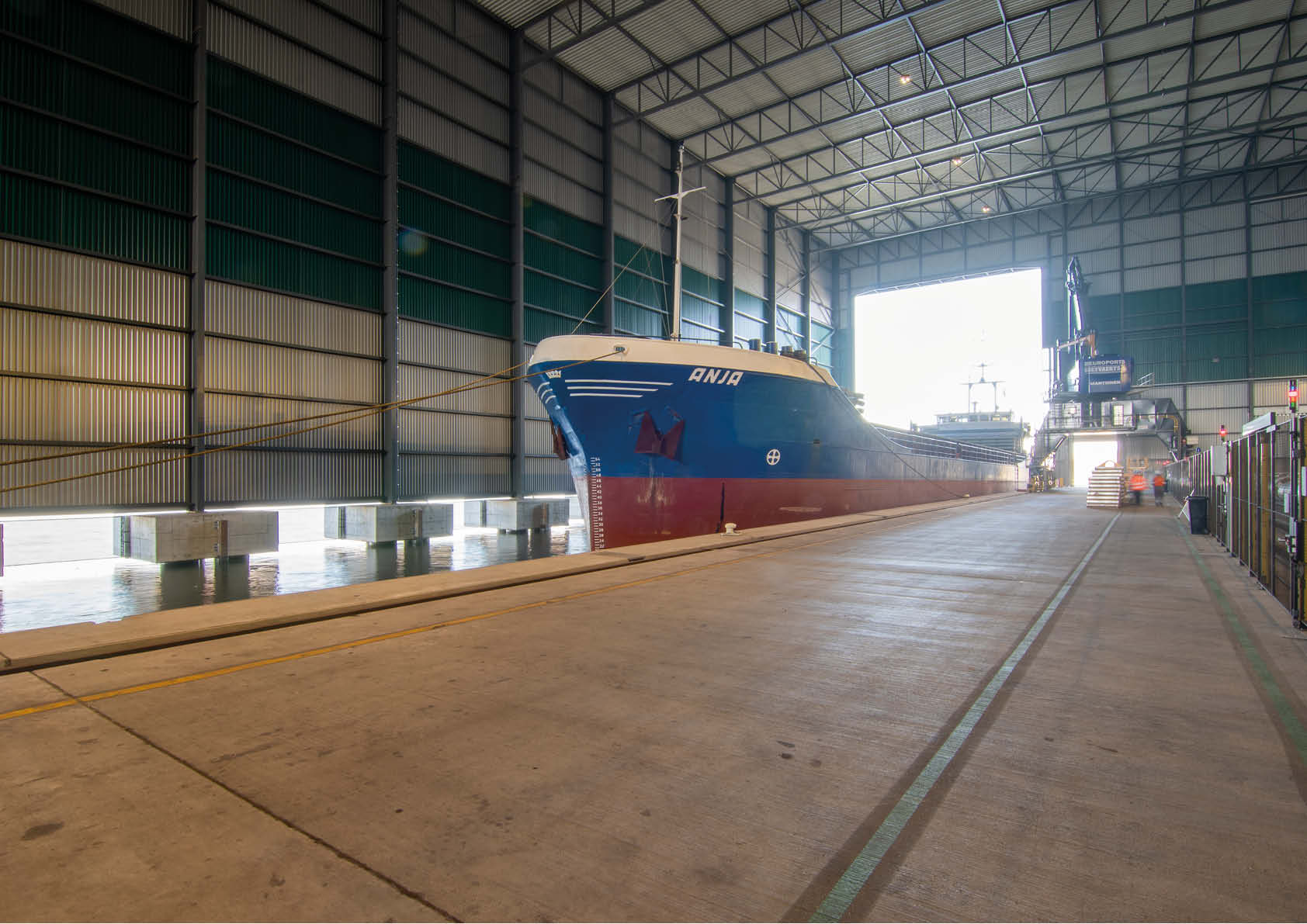 Uniek aan de All Weather Terminal is zijn overdekte kademuur van 200 meter lang met een 25 meter breed dok en een volume van 30 meter boven het waterniveau waardoor binnenschepen en zeeschepen met een laadvermogen tot 10.000 ton en een diepgang tot 8,20 m beschut tegen weer en wind aan de nieuwe kade kunnen aanmeren.