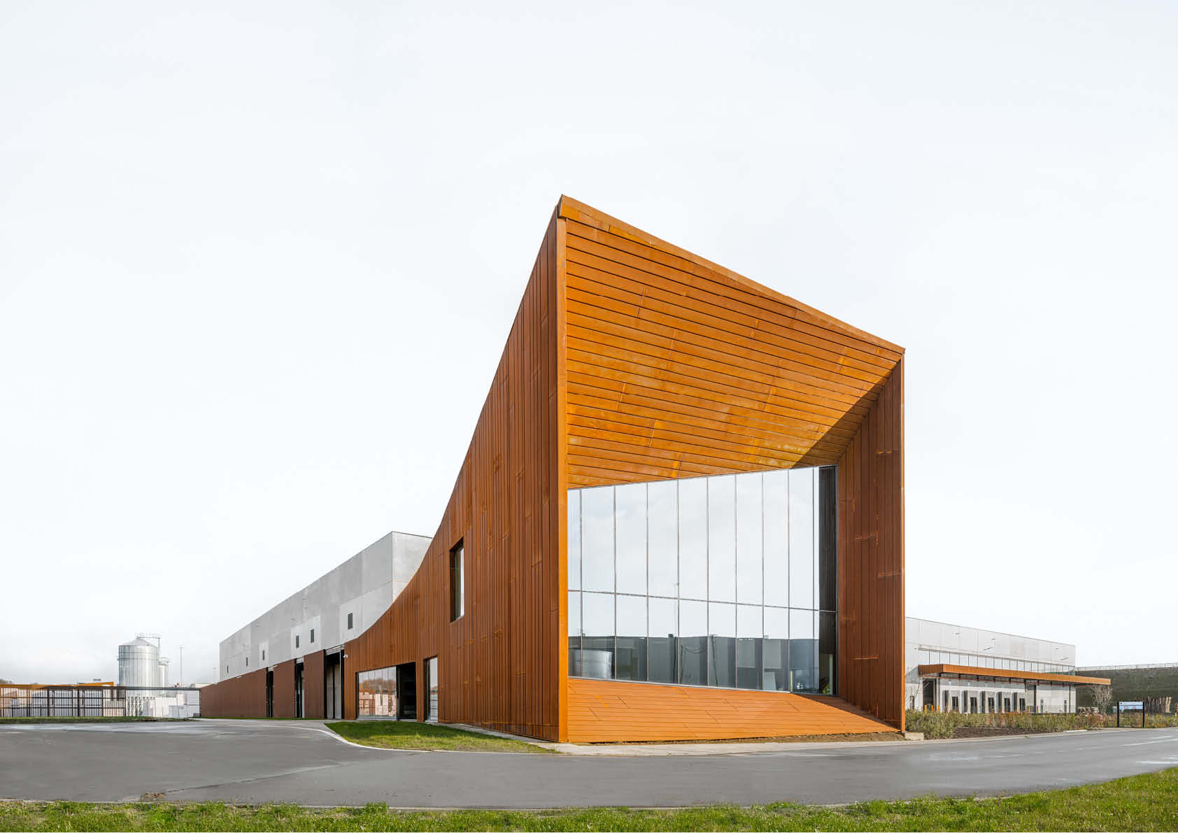 Een karakteristieke look-and-feel, sterk, onderhoudsvriendelijk, snel te installeren, geschikt voor grote overspanningen en prefabricatie: het zijn slechts enkele van de vele voordelen van staal die in dit project tot uiting kwamen. Een functionele fabriek met cortenstaal als rode draad.