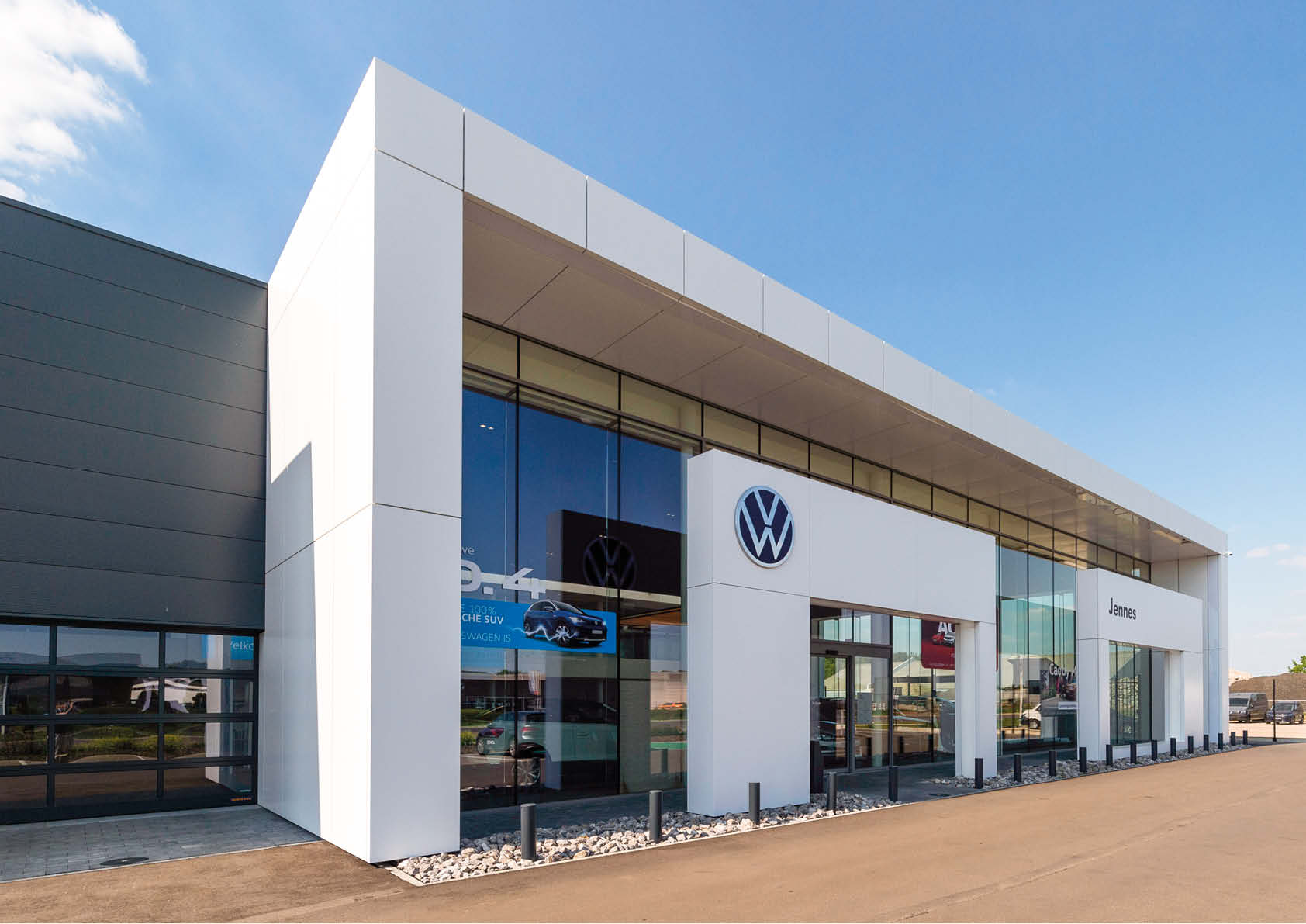 J-Project, oftewel garagebedrijf Jennes, liet langs de Ter Heidelaan in Aarschot een nieuwe garage optrekken voor de automerken Volkswagen, Skoda en Seat. Deze laatste kregen niet enkel een aparte showroom met bijbehorende verkoopruimtes, maar ook een volledige carrosserieafdeling.