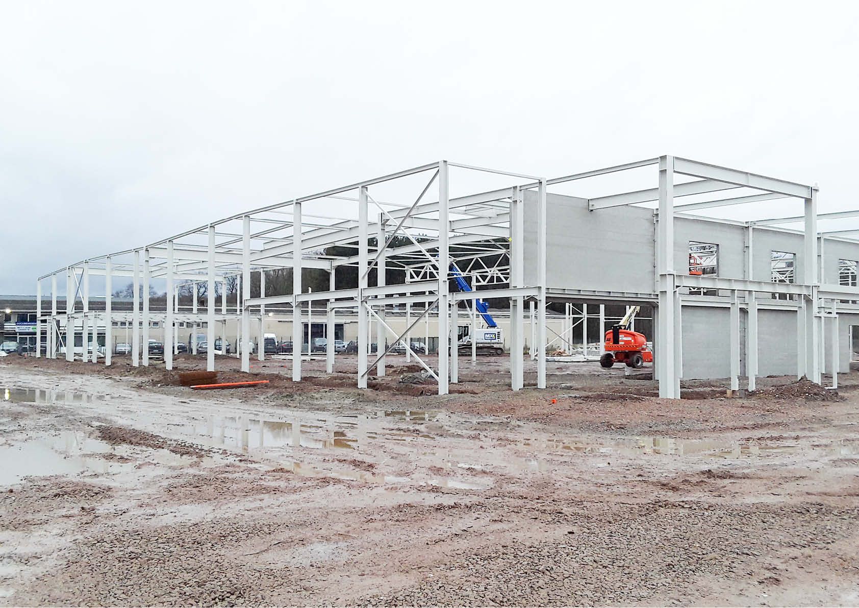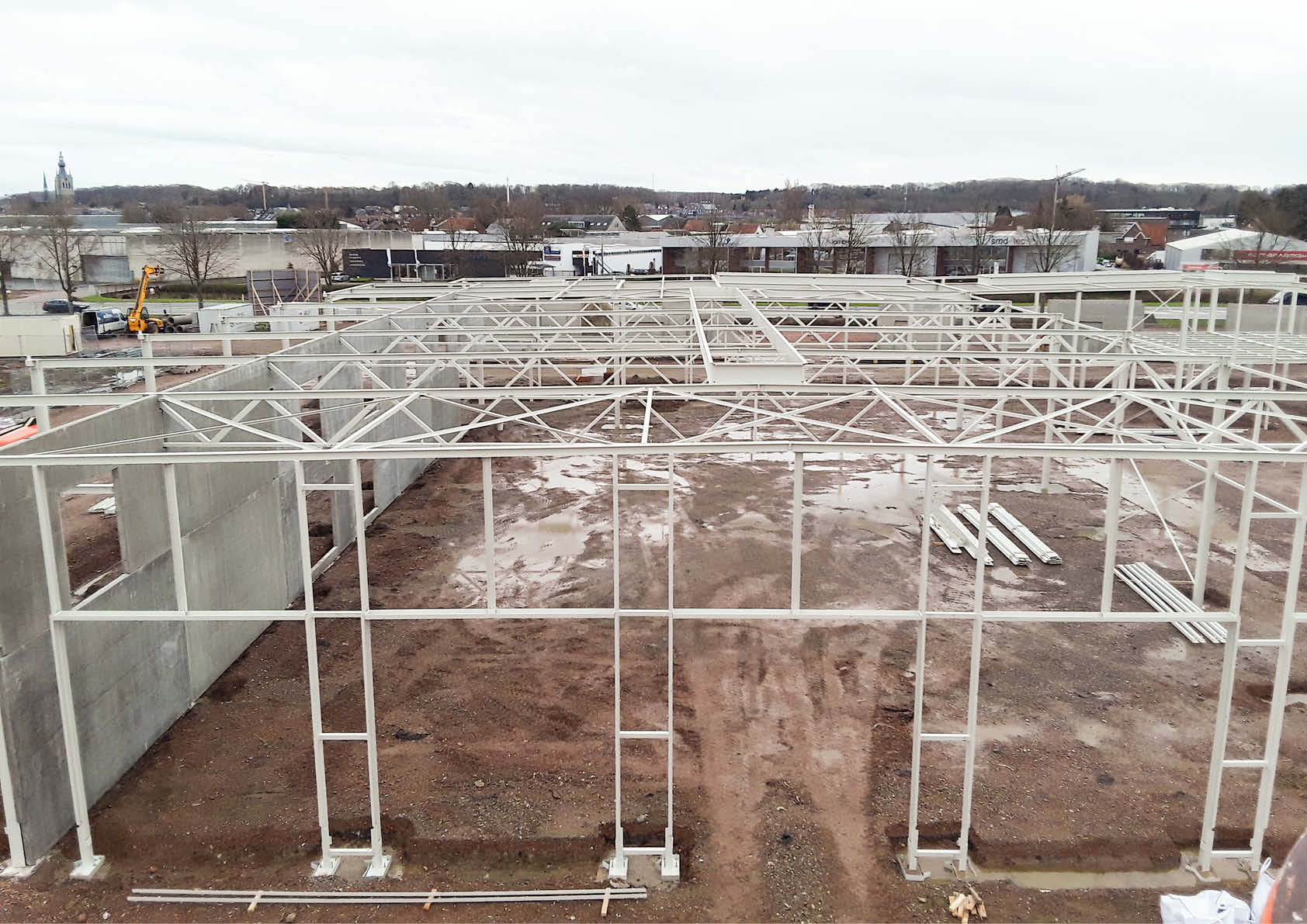 Aangezien de timing erg strak was en het uitvoeringstempo bijgevolg zeer hoog moest liggen, werd er geopteerd voor een volledige staalstructuur voor zowel de tussenvloeren als de dakconstructie (vakwerkspanten, volle liggers …). Daarnaast is de gevel bekleed met 2150 m² geïsoleerde stalen sandwichpanelen en zijn er tevens 4500 m² geprofileerde stalen dakplaten geïnstalleerd. In totaal is er maar liefst 215 ton staal verwerkt in het gebouw.