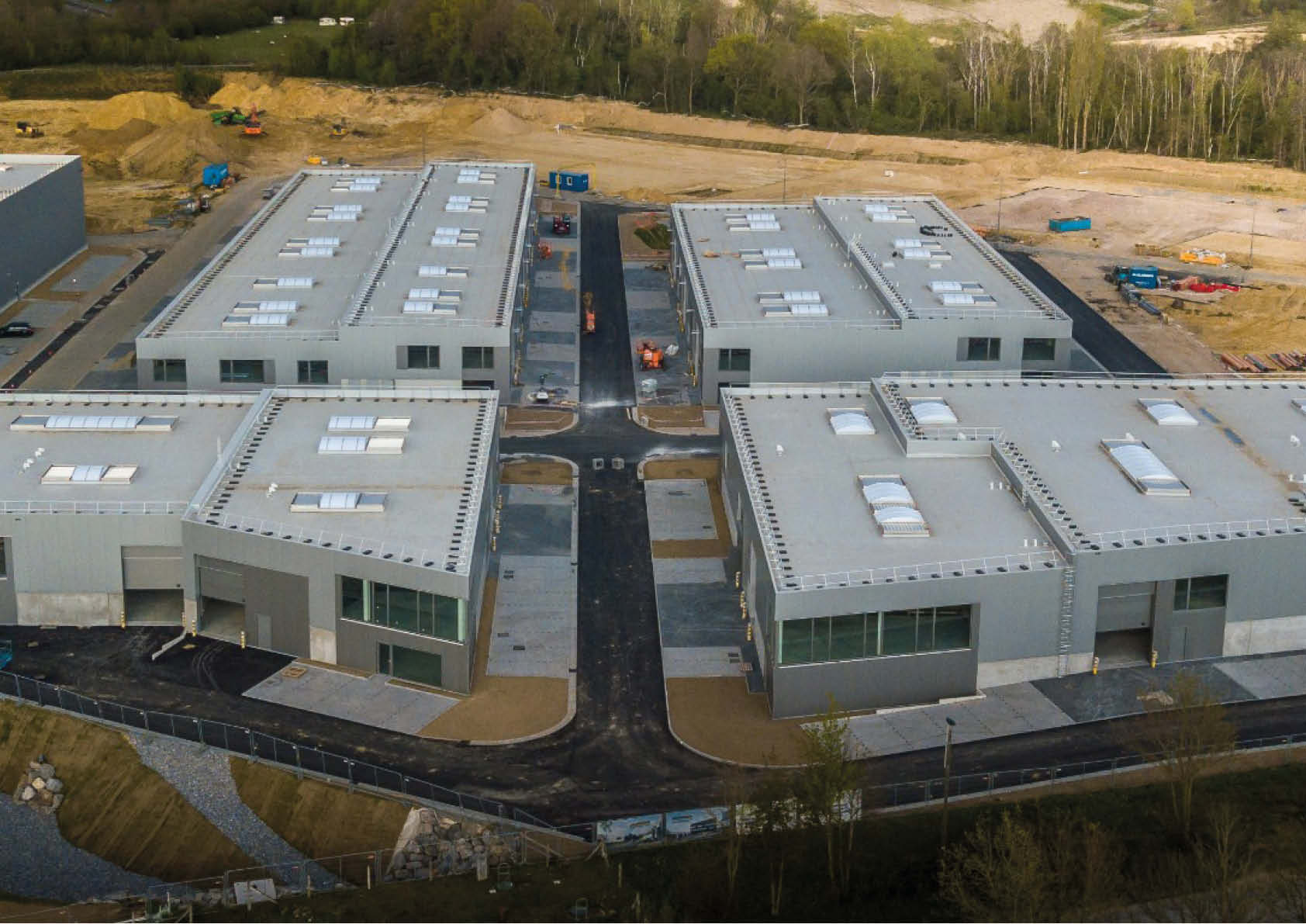 Te beginnen met fase 1, goed voor 43 KMO-units verdeeld over 4 gebouwen van in totaal 10.000 m², 400 ton staal, 4.600 m² sandwichpanelen. Gevolgd door fase 2, goed voor nog 12.500 m², 795 ton staal en 6.200 m² sandwichpanelen. Fase 3 is in uitvoering.